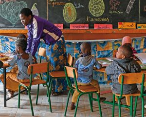 Uruma Fronto kommt mit ihrem Sohn Esrom drei Mal die Woche in eines der Simama-Reha-Zentren.Father Furaha ist inzwischen in einem der Simama-Reha-Zentren angekommen. Die Gemeinde hat ihm für sein Projekt in einem Schulgebäude hinter der Kirche einen Raum zur Verfügung gestellt. Heute sind etwa zwei Dutzend Mütter und einige Väter mit ihren Kindern gekommen. Mit dabei viele Geschwisterkinder, die auf dem kleinen Platz vor dem Schulgebäude herumtoben oder den Physiotherapeuten und Sozialarbeitern bei den Übungen neugierig über die Schultern schauen.